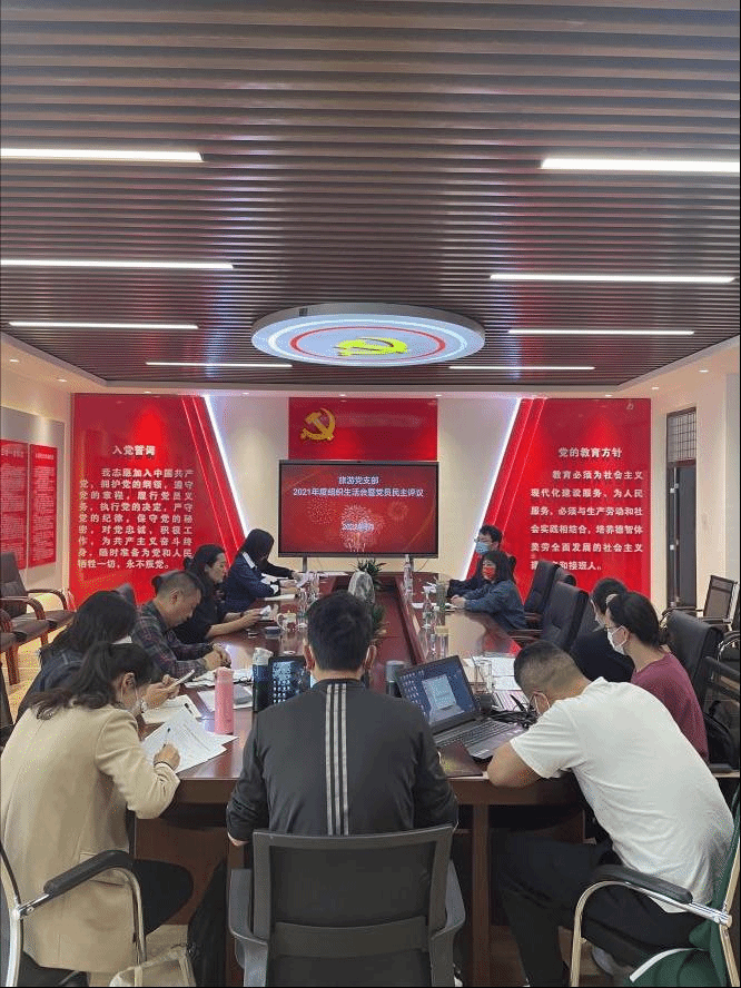 为深入学习贯彻党的十九届六中全会精神,不断推进党的建设新的伟大工程,旅游党支部结合实际,统筹安排,精心组织,于2022年3月14日在勘物楼A303召开2021年度基层党组织组织生活会和民主评议党员大会。