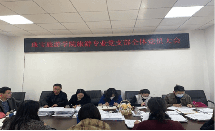 第二项流程:宝石党支部和旅游党支部分别召开全体党员大会,宝石党支部书记李继红和旅游党支部书记陈畅分别向支部党员传达学习了上级关于党的二十大代表选举工作的相关文件精神,对党的二十大代表候选人推荐工作、学校党代会代表推荐工作、民主生活会工作进行安排部署并提出具体要求,对推荐名额结构和比例、推荐程序及时间安排等进行了详细的安排。会议最后经全体党员研究,酝酿了党的二十大代表候选人名单、学校党代会代表推荐名单并上报党总支进行讨论研究。
