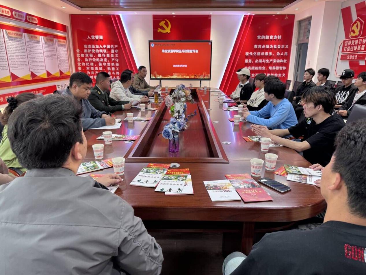 学院负责征兵工作的辅导员杨勇老师就参军入伍相关政策进行了全面且细致的讲解。他从入伍政策讲起,深入解读了体检标准、年龄限制等规定,以及退役后专升本和就业安置的各项保障,加深了同学们对参军政策和军旅生涯的理解。