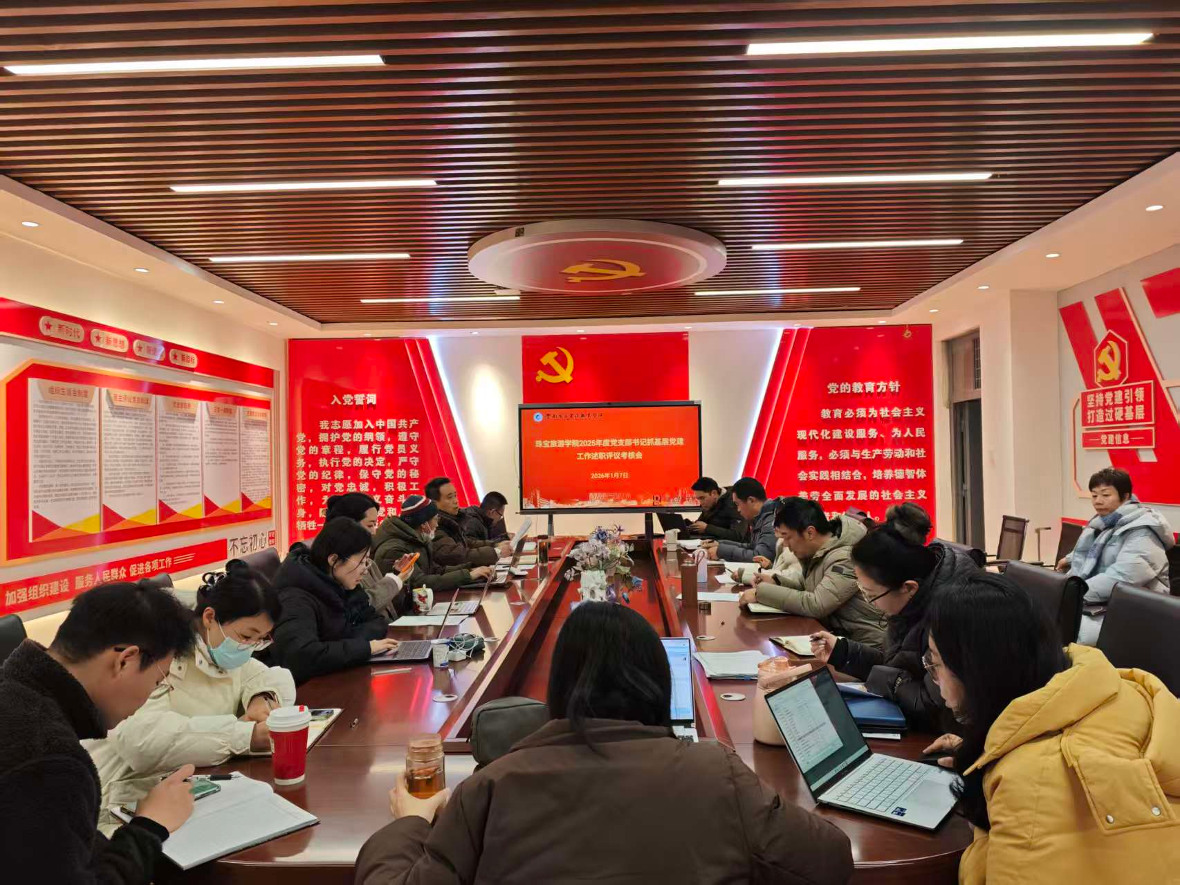为进一步强化基层党组织书记抓基层党建工作第一责任人职责,增强管党治党责任意识,推进全面从严治党向基层延伸。1月7日,珠宝旅游学院于勘物楼A303党建室召开2025年度党支部书记抓基层党建工作述职评议考核会议。学校党委委员、副校长李光祥到会指导,学院党政班子成员、各党支部委员及教职工党员代表出席会议。会议由学院党委书记袁佳主持。