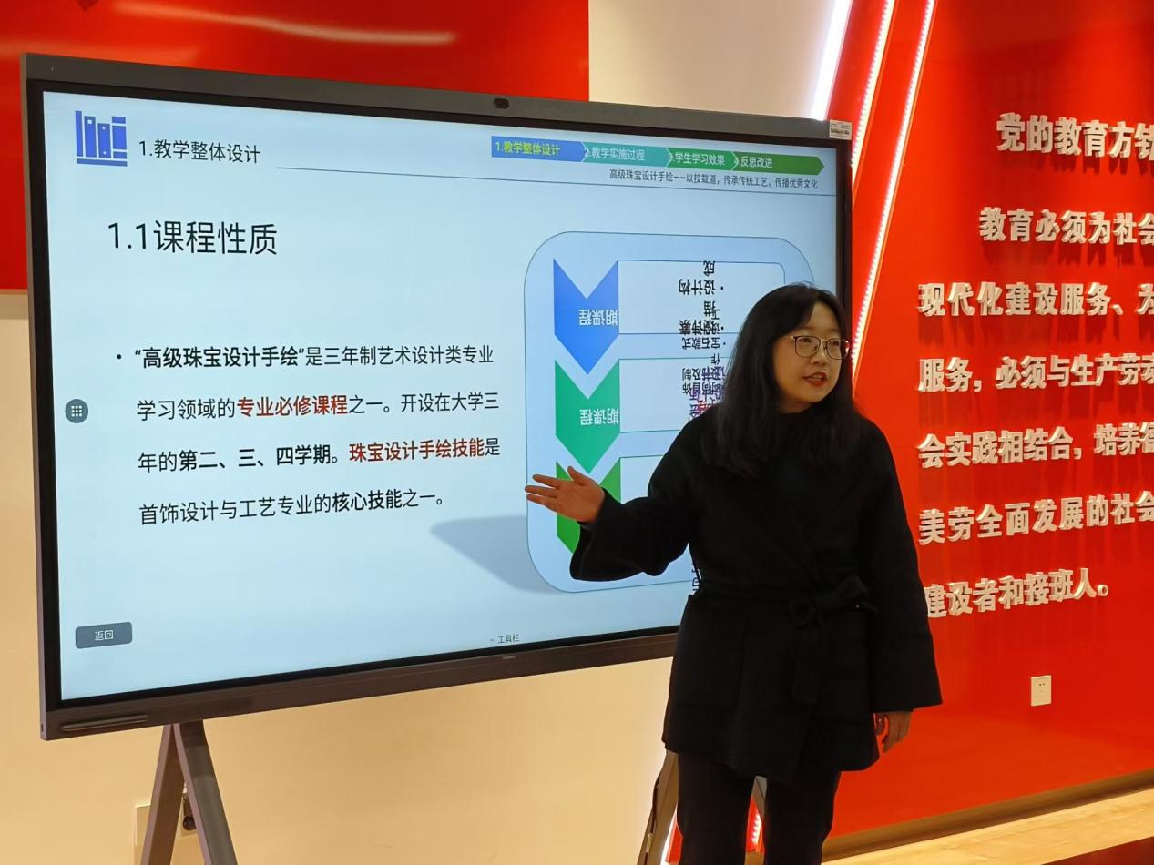 活动现场8位老师就珠宝电子商务,旅游市场营销,老年基础护理等8门课程进行说课。教师们围绕课程设置、课程目标、教学策略、教学内容、教学资源、考核评价等方面进行说课展示。参赛教师新颖独特的说课设计、从容自信的教学姿态、条理清晰的说课语言,充分体现了概论课教师深厚的教学基本功和良好的专业素养。在座的各位老师对说课作出了好评,也指出一些有待提升之处。